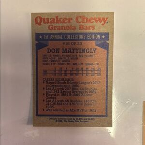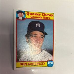 Don Mattingly Baseball Card by Topps Quaker chewy 1986 mint condition
