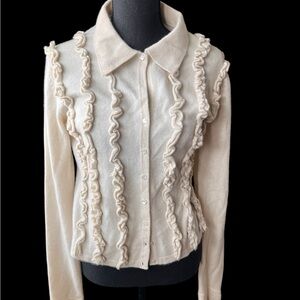 Don Rakow Vintage Ruffled Cashmere Cardigan