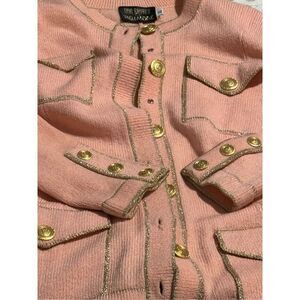 Don Sayred for Wellmore pink sweater gold buttons,pockets size 10 wool blend cha