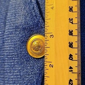 Stylish blue button-up jacket with gold buttons. Excelent condition. Perfect for adding a pop of color to your wardrobe. preppy old Money. big gold buttons with lots of details.