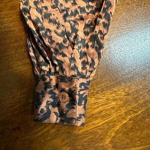 DonCaster Silks Women 8 Button Back Rust Black 100% Silk Lightweight Longsleeve
