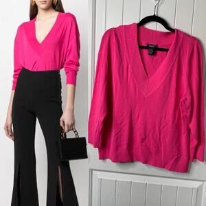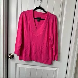 DonCaster hot pink plunging V neckline barbie core sweater‎ size XL