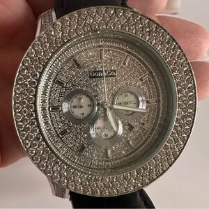 For the man who loves making a statement, this Don & Co. oversized diamond watch is the epitome of bold luxury. Fully encrusted with shimmering stones, this timepiece catches the light from every angle, exuding undeniable presence and sophistication.