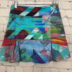 Colorful abstract print tennis skirt. Size 2 fits a Large.