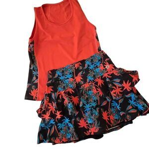 Dona Jo Womens Tropical Tennis Flirty Skort and Top Set Size Small