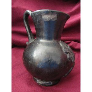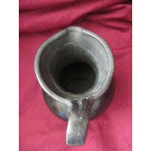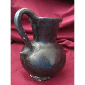 CONDITION/INFO: Please review photos for condition. While not in perfect condition, this is a great starter collectible. Black clay folk art pitcher by famous Mexican potter Dona Rosa. Surface has wear and some material has come off in places mostly on neck and around base. Handle seems its not straight, but that is as it was made. No cracks that go through pitcher or affect use, but this is a display item. I did not clean this up as I dont want to hurt the surface, but it could be polished to bring out the natural luster. Signed on bottom by artist with name, and Coyotepec Oaxaco Mexico. Great addition to collection.