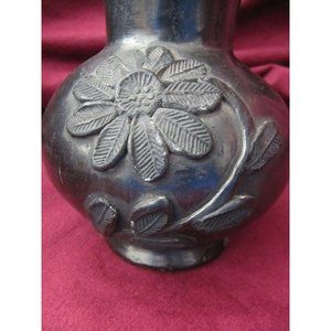 Dona Rosa Oaxaca Mexican Folk Art Flower Pitcher Black Clay Pottery Vase HE1