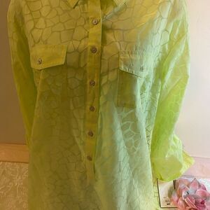 Size : Large , cool Lime long sleeve. Material, 55% polyester