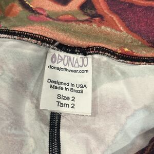 DonaJo Leggings Womens 2 Large Abstract Black Blue Pink Yellow Stretch Dona Jo