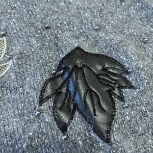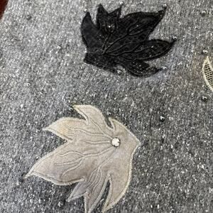 Gray tone leaf applique print with bead, rhinestone and embroidery embellishments