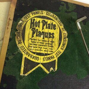 These vintage hot plate plaques featuring a charming still life of fruit baskets are practical and decorative. Made by Donald Art Co, they provide heat resistance for your table or wall.