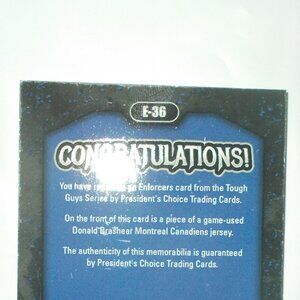 donald brashear was a real tough guy- this is a superb 2-tone jersey relic from his montral canadien days- a must have for any fighter collector- fresh out of a box and in fantastic condition- will ship very protected-