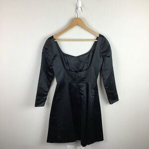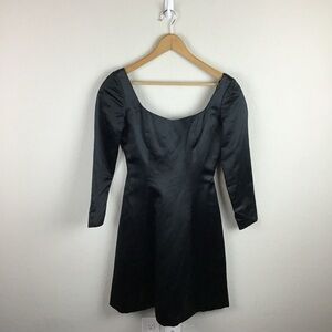 Donald Deal Black Silk A-Line Dress Long Sleeve Scoop Neck Size 6