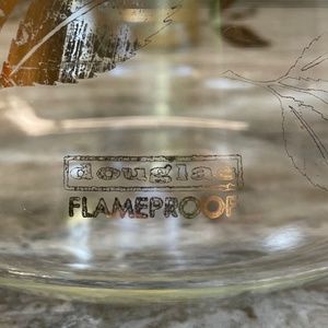 Lovely Vintage Donald Douglas Flameproof Tea Pot or Tea maker in gold leaf pattern with original gold colored tea infuser. Some of the gold on the leaves has worn off and there are a few marks in the gold metal surrounding the rim. Otherwise this kettle is in very good condition.
