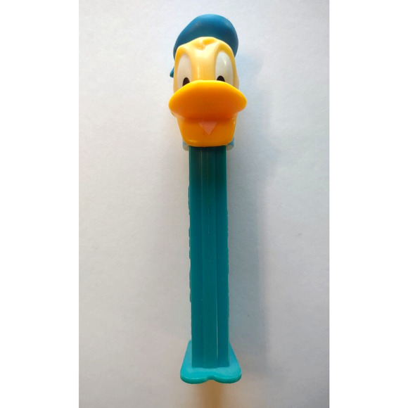 This vintage Disney candy container from Hungary features the beloved character Donald Duck. Made in vibrant blue, this candy dispenser is a must-have for collectors of Disney and cartoon character memorabilia. The container is a unique piece for collectors who love Pez, keychains, promo glasses, and collectibles in general. This item is perfect for those who want to add a touch of nostalgia to their collection of Disney products.