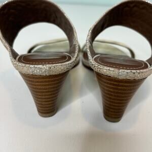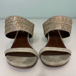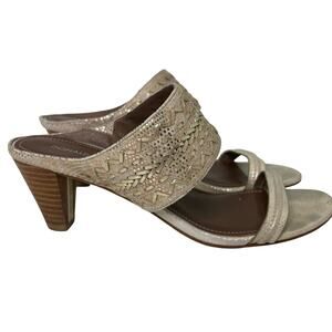 Donald J Pilner Viv Champagne Gold Leather Woven Heeled Sandal 7.5