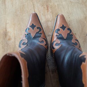 These vintage Western couture ankle boots, handcrafted in Italy, are a stunning blend of craftsmanship and style. The rich leather has been expertly shaped, showcasing intricate detailing that speaks to their high-end heritage. Despite their vintage nature, they are in like-new condition, with minimal signs of wear, ensuring you get the full luxury experience. The Western-inspired design features a sleek, tapered toe and a sturdy, yet refined heel, making them both chic and practical. Whether paired with jeans or a dress, these boots effortlessly elevate any outfit with a touch of sophisticated edge.