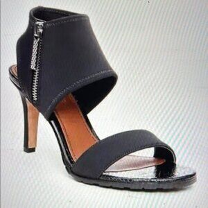 Donald J. Pliner (38) Black Leather Tilda Stretch-Cuff ZipAnkle Stiletto Sandal