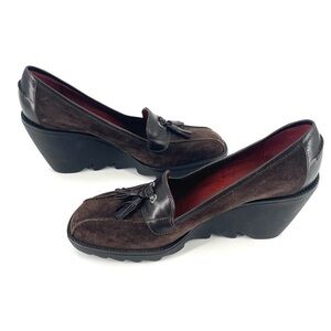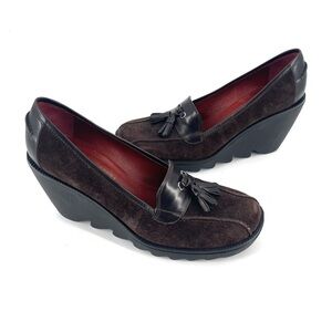 Donald J Pliner Baco Wedge Pumps Brown Suede High Heels Shoes Italy