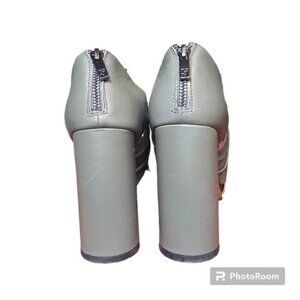 Donald J Pliner Bailey Knot Gunmetal Sandals Sz 9M Block Heel 4.5" Metallic