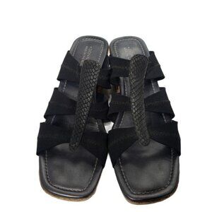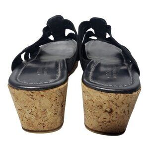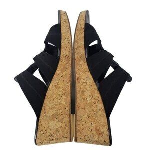 Donald J. Pliner Black Elastic Cork Wedge Sandals Size 10 Womens Platform Slides