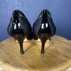 Elegant black heels with pointed toe. Features lace-up detail and sleek design. Perfect for formal occasions.
