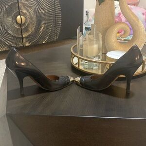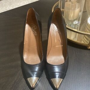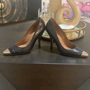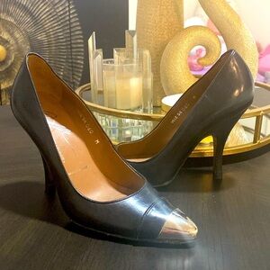 Donald J. Pliner Black Pointed Toe Stilettos W Chrome Toe. 6
