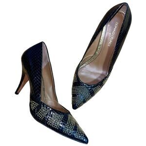Donald J Pliner Black Pumps Snakeskin StuddedRetro Pointed Toe
