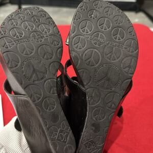 Experience effortless style with these Donald J. Pliner black sandals, featuring sleek crisscross straps and a comfortable contoured footbed. The metallic buckle detail adds a touch of sophistication, making them perfect for casual everyday wear.