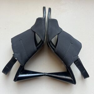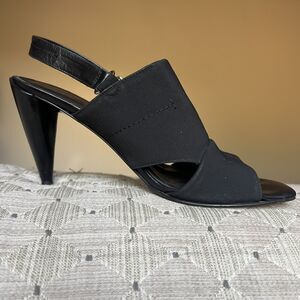Donald J Pliner Black Stretch Fabric Heeled Slingback Italian Sandals Women 8.5