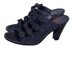 Donald J Pliner Black Suede Strappy Buckled Heeled Sandals Mules