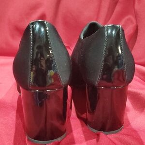 These elegant heels by Donald J. Pliner showcase a sleek black design complemented by a striking silver heel. The square toe adds a touch of sophistication, making them perfect for both formal and casual occasions.