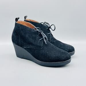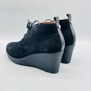 Donald J Pliner Boots Women 6.5 Black Suede Wedge Ankle Lace Up Comfort NAKKA-23