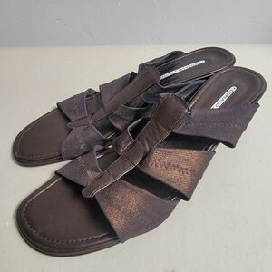 Donald J Pliner Brown Bronze Metallic Heel Dress Sandals Strapped Size 11 Spain
