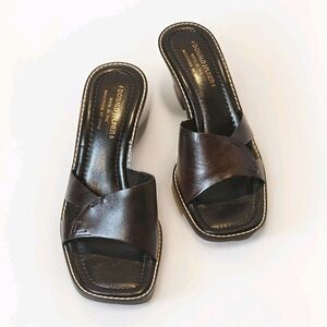 Donald J Pliner Brown Leather Block Heel Sandals 9.5M – Made in Italy, EUC