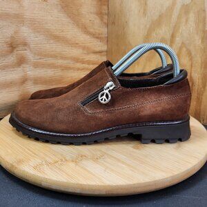 Donald J Pliner Brown Suede Peace Sign Side Zip Slip On Loafers Size 9N Narrow
