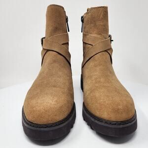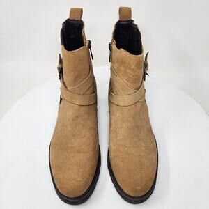 Donald J. Pliner Captain Chelsea Boots Women 8M Tan Suede Brown Panel Side Zip