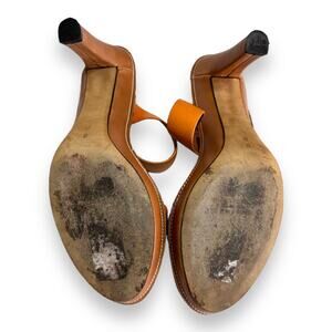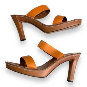 Donald J Pliner Chasta Orange Tan Two Strap Leather Heeled Sandals Womens Size 8