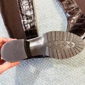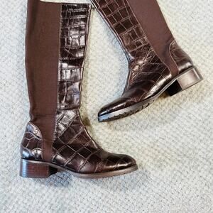 Donald J Pliner Chocolate Brown Croc Embossed Calf High Tall Leather Riding Boot