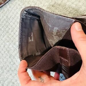 Donald J Pliner Chocolate Brown Croc Embossed Calf High Tall Leather Riding Boot Boxer 9, has some peeling to the liner around the top