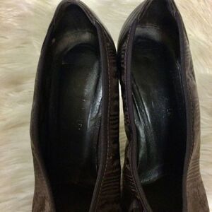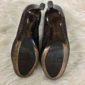 Rich Chocolate Brown Satin Open Toe Pumps by Donald J. Pliner.