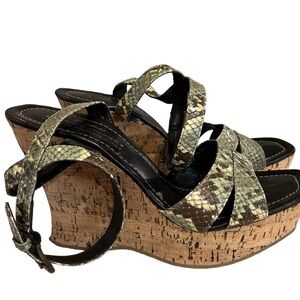 Donald J. Pliner Couture 8.5 Green Snake Print Leather Square Toe Wedge Sandal