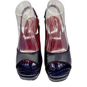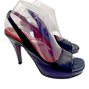 Donald J Pliner Couture Baby Calf Gator Leather Shoe New Platform Peep Toe 8.5