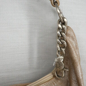 Donald J Pliner Couture Bag Womens Gold Metallic Leather Zip Small Hobo Handbag
