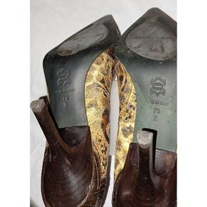 Donald J Pliner Couture Brown Leather Tapestry Pointed Toe Pumps Size 7.5