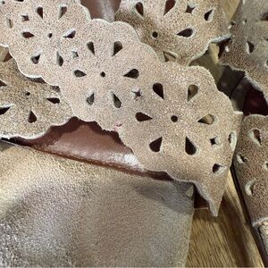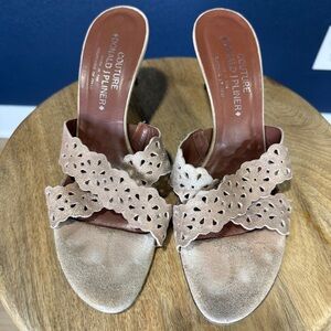 Donald J. Pliner Couture Distressed Tan/Silver Metallic Slide Heels, Size 10