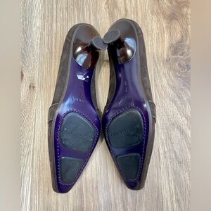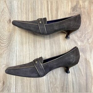 Donald J Pliner Couture Mena 7 M Brown Leather Lo heel Gold Diamond Accent like New