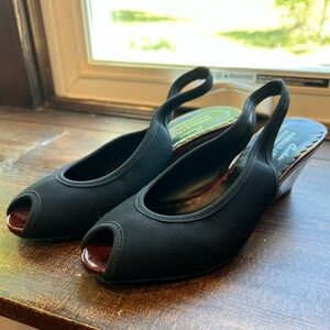 • FEATURES: super cute tortoise shell wedge heel, sling back style with peep toe