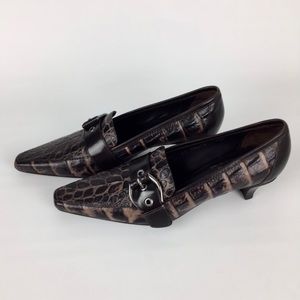 Donald J Pliner Couture Womens Narrow Mallow Brown Croc Print Pumps size 7.5N