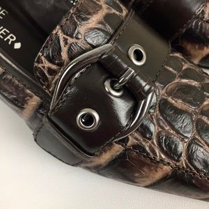 Donald J Pliner Couture Mallow brown narrow croc leather heels, size 7.5N Narrow